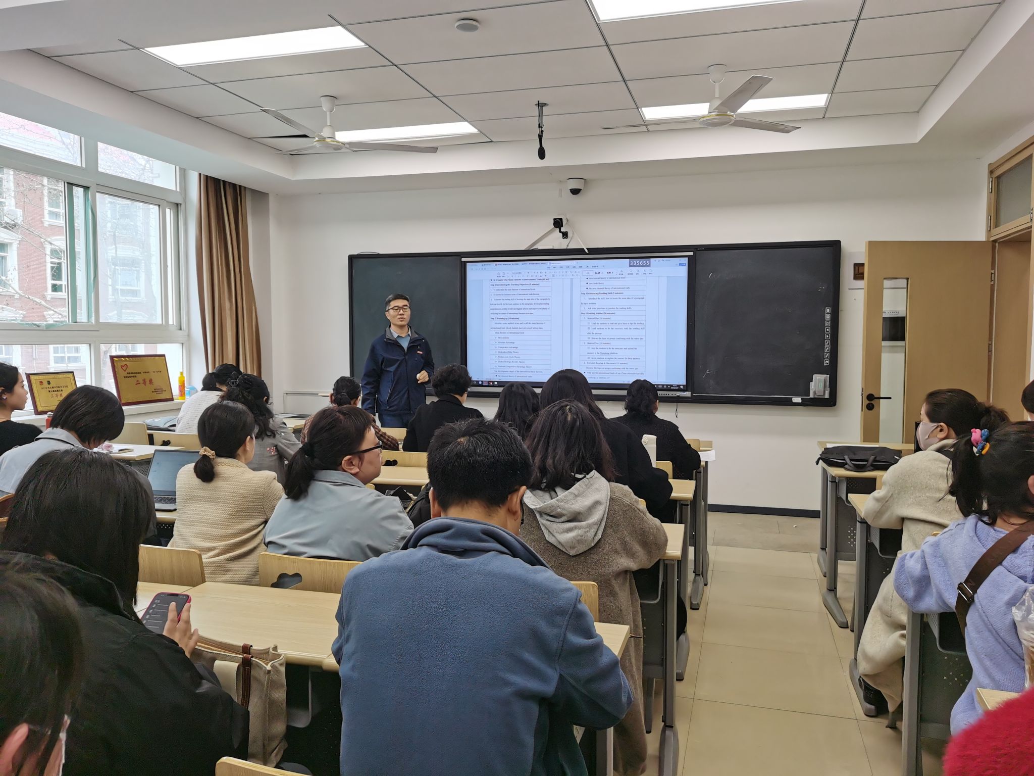 为深入贯彻落实习近平总书记关于教育的重要论述,推动信息技术与教育教学融合创新发展,不断激发课堂教学活力,不断掀起教学改革热潮,3月27日下午,英文学院在西区1号楼1216教室举行第四届“教师教学大赛”复赛,选拔优秀教师参加校级决赛。英文学院教学副院长李燕、商务英语系主任杨妍、英语系副主任杨冰及公共英语教学中心主任张娟担任评委,来自各系选拔的8位教师参赛,各系教师代表现场观摩。