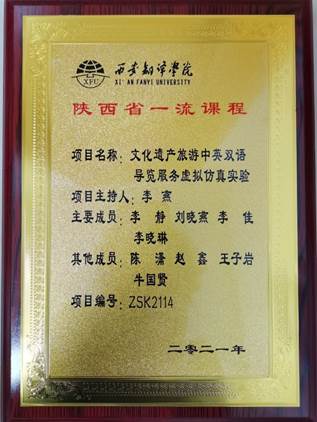 《模拟导游》文化遗产旅游中英双语导览服务虚拟仿真实验教学 | 虚拟仿真“一流”课程 | 2021 |