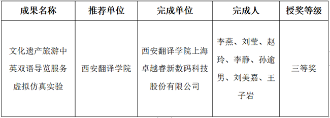 4月17日,陕西省教育厅发布了《陕西省教育厅关于表彰2023年度陕西高等学校科学技术研究优秀成果奖的通报》(陕教函〔2023〕366号)文件。我校英文学院李燕、刘莹、赵玲等老师的成果《文化遗产旅游中英双语导览服务虚拟仿真实验》荣获三等奖。此次是我校继2022年后再次获得该奖项,标志着我校科学技术研究成果质量的显著提升。