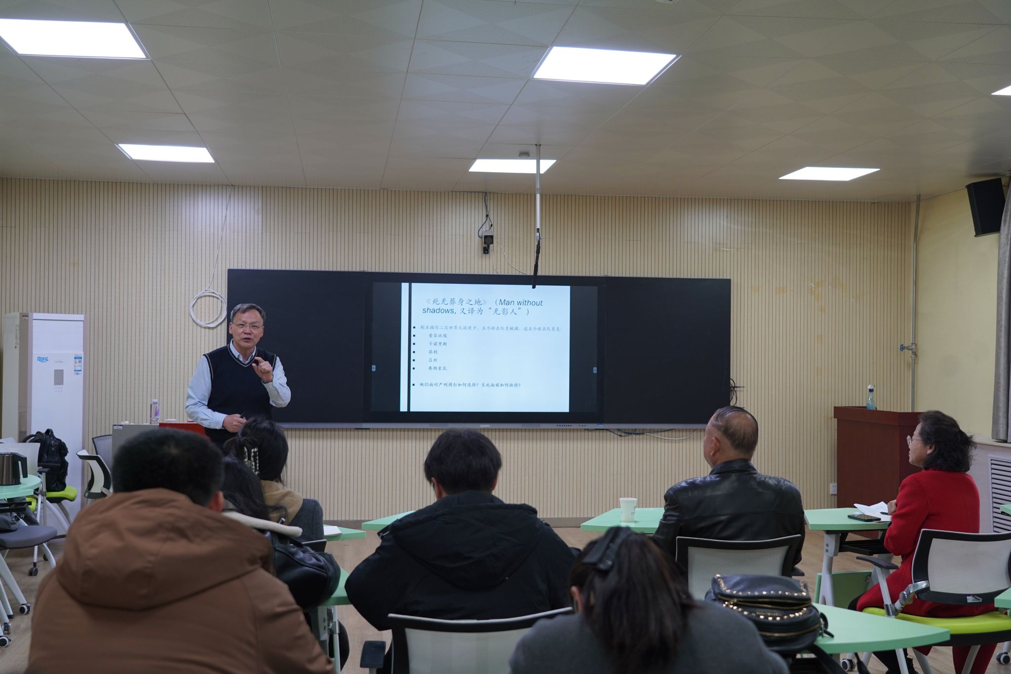 在讲座结束时,师生们对曾艳兵教授的深入讲解表示极大的兴趣,并积极提问。老师们和学生们特别对史铁生作品《命若琴弦》是否受到存在主义影响表示好奇,同时就“自由”的本质进行了深入探讨。曾教授耐心回答了学生们的问题,讨论中涉及了绝对自由与相对自由的区别,使学生们受益匪浅。