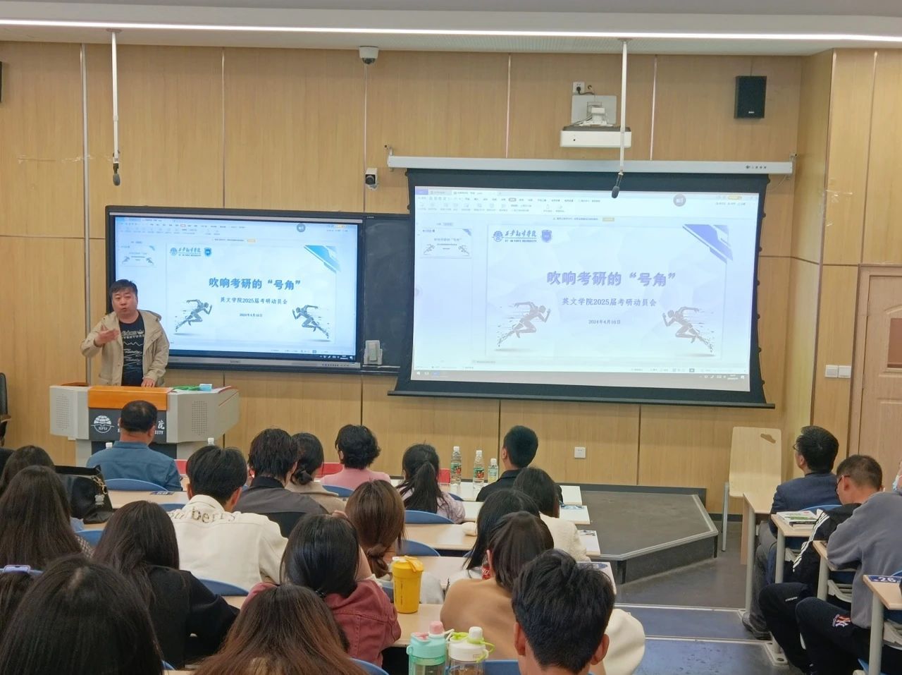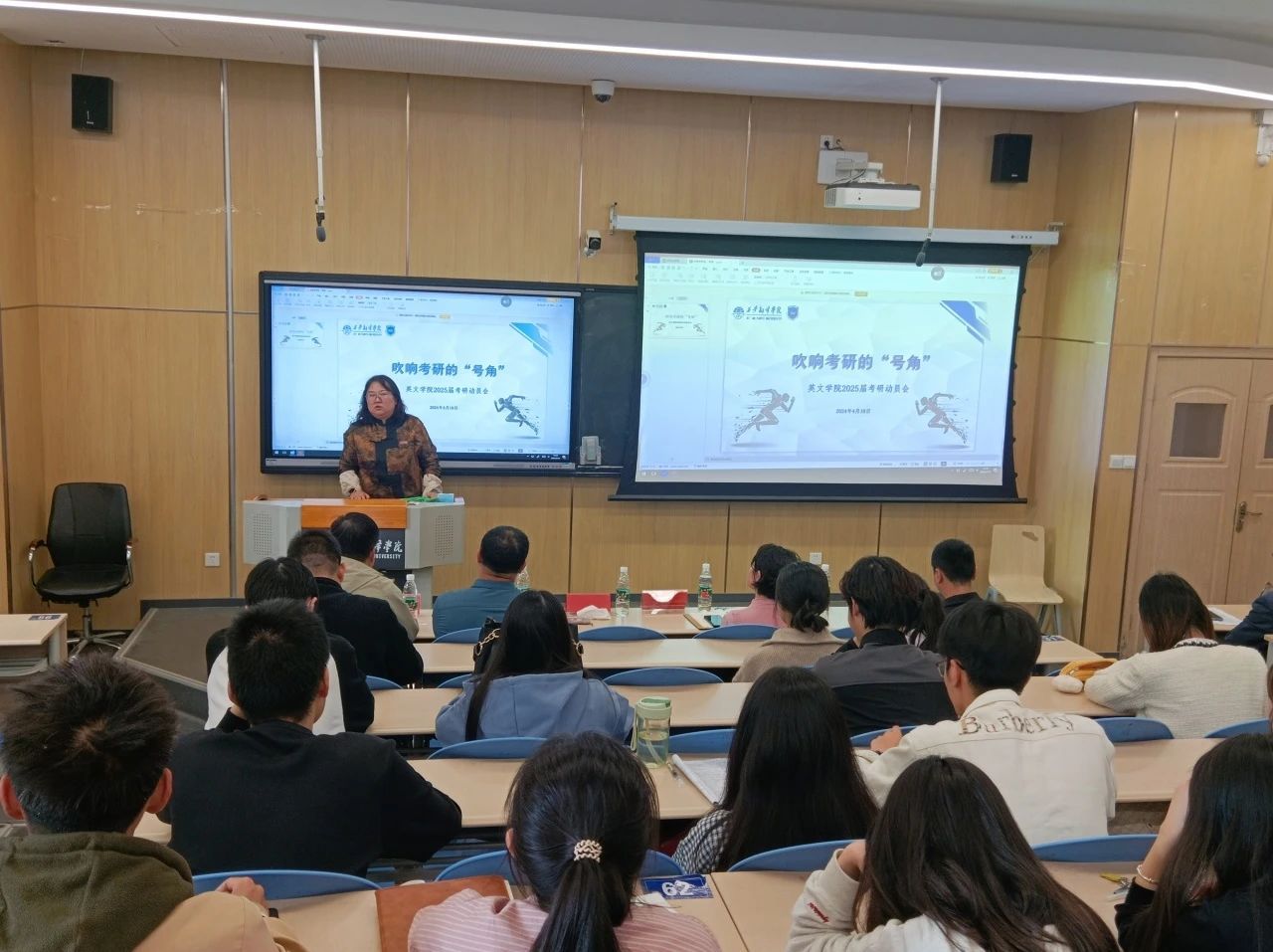 为落实立德树人根本任务,激发英文学子考研热情,鼓励考研学子坚定信心,为考研学生提供帮扶指导,4月10日下午英文学院于西区四号楼4220T教室召开2025届考研学生动员大会。学生学业发展副中心主任梅洁,考研指导老师王钰应邀参加会议,并就当前考研形势以及院校及专业选择做专题分享。英文学院党委副书记、副院长王珍,英文学院副院长李燕,学院综合办副主任曾维民,以及2025届毕业班全体辅导员和考研学子参加会议。会议由学院综合办副主任曾维民主持。