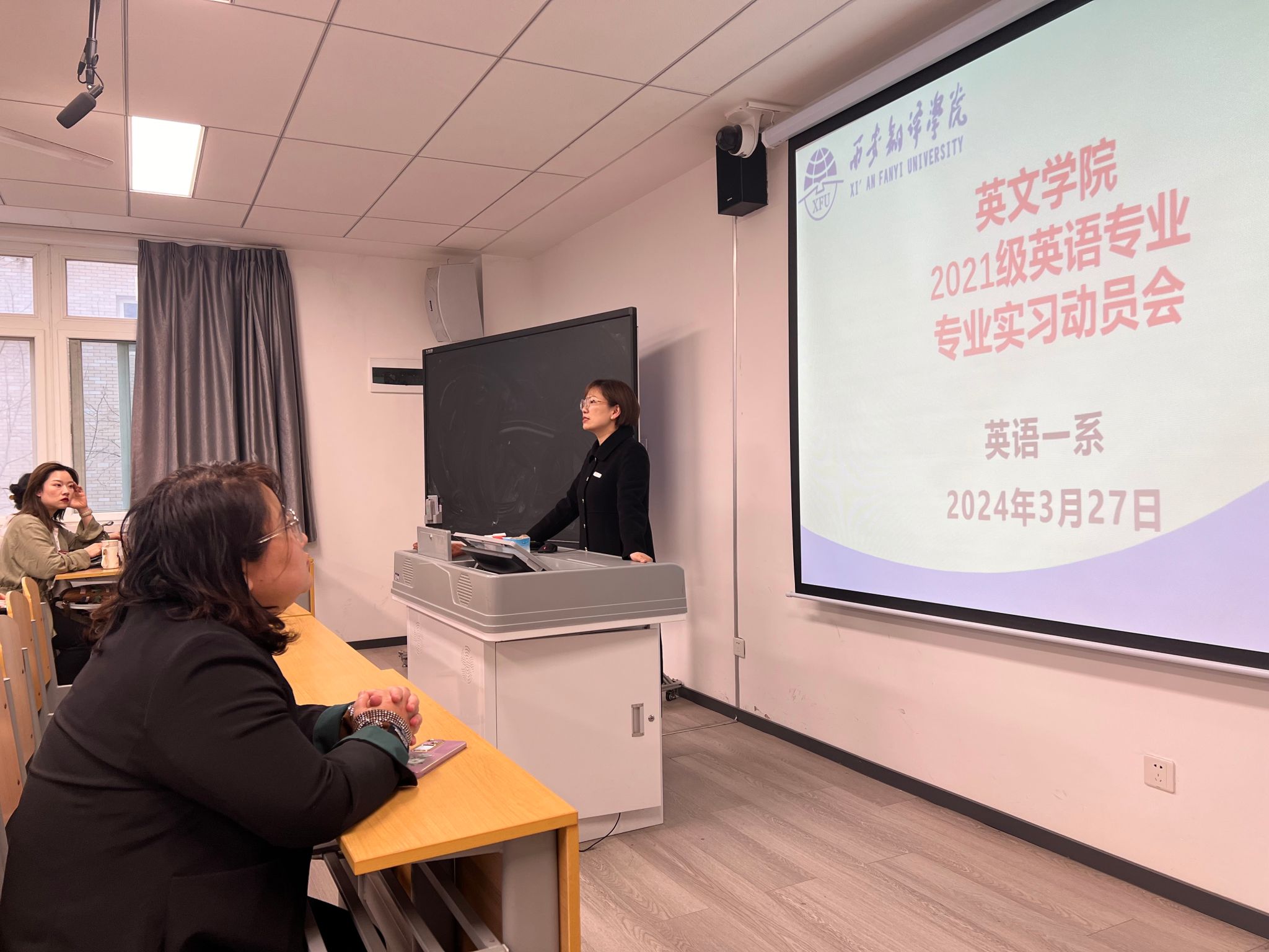 李冬花老师正在主持动员会