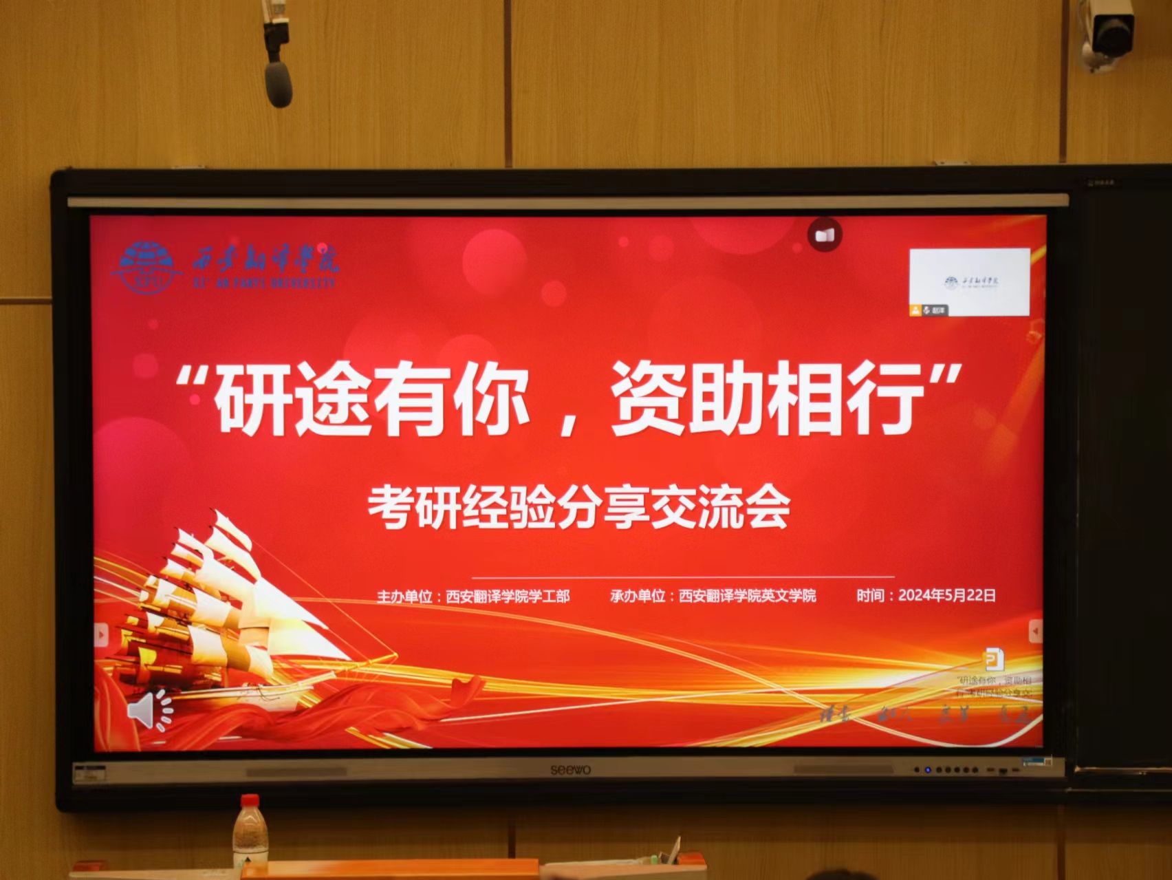 为深入贯彻党的二十大精神,全面落实立德树人根本任务,大力拓展资助育人新途径,助力家庭经济困难学生规划未来,提升升学就业能力,西安翻译学院学工部与英文学院携手于2024 年 5 月 22 日 晚上 19:00-20:30 西区四号楼 4220T教室面向西安翻译学院有考研意向的学生举办“研途有你,资助相行”2024 年考研经验交流会。