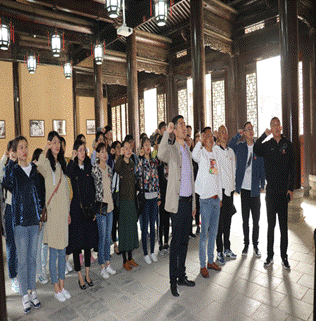 大家参观了六椽厅,这里曾是青训班上课的教室,一批又一批的学员在这里奉献青春,用学到的本领为抗日战争的胜利做出了自己的贡献。学院党委书记樊磊同志带领全体党员面向党旗,重温入党誓词,铮铮誓言令人热血沸腾,站在党旗下,同志们对继承革命传统,坚定革命信念,弘扬艰苦奋斗的精神有了更深刻的认识。
