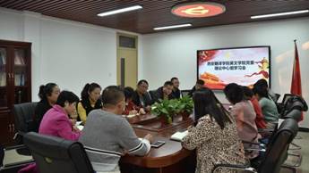 11月11日16时整,西安翻译学院英文学院党委中心组学习会议在一号楼二楼党员活动室召开。会议主题为加强和改进新时代师德师风建设,各分党委委员、全体院领导、各系主任、综办各主任、数字语言中心主任、教师支部书记参会学习,会议由党委书记樊磊主持。