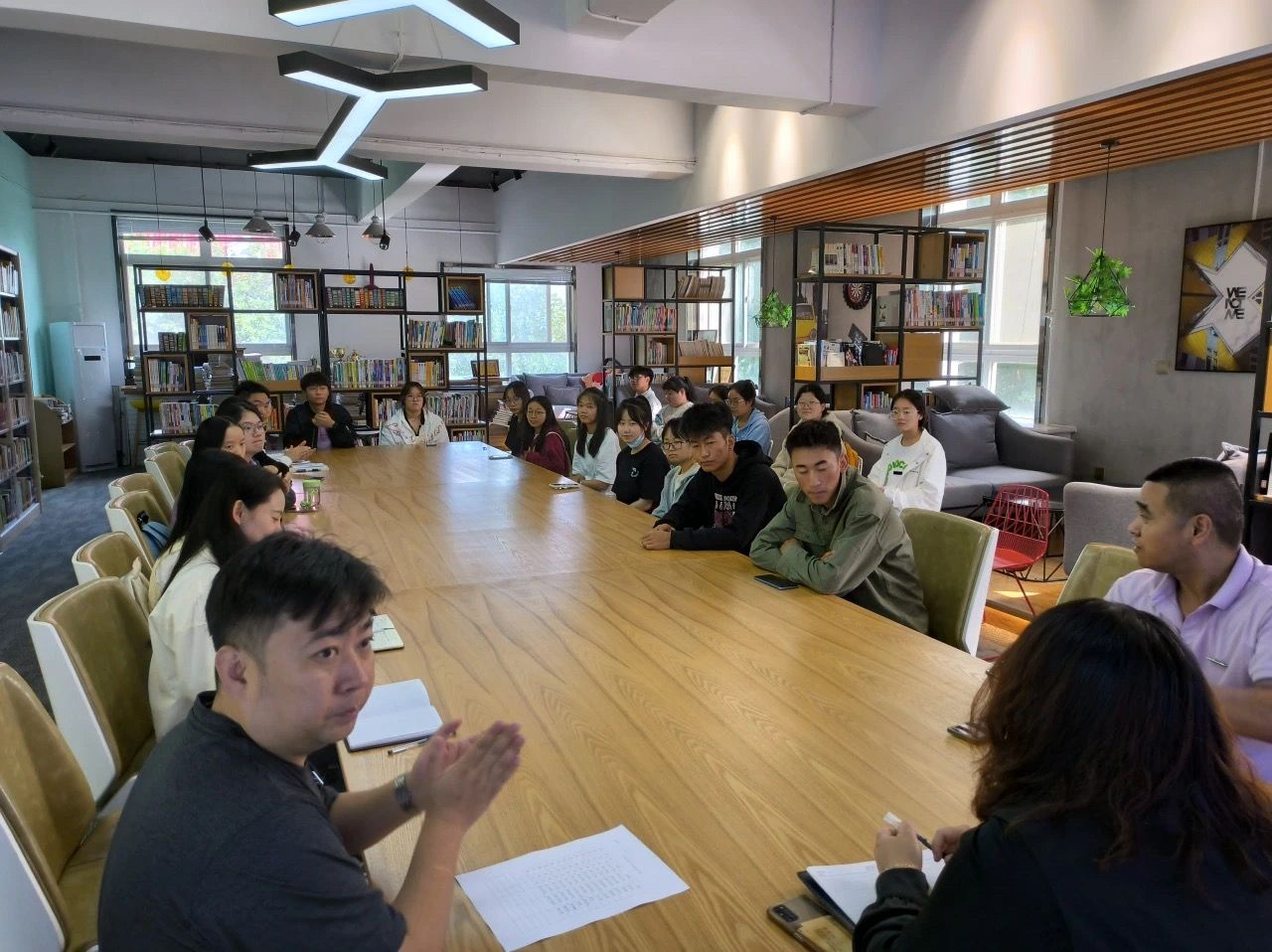 新学期开学之际,为扎实开展好民族团结进步宣传月活动,铸牢中华民族共同体意识,促进各民族交往交流交融,英文学院党委于2023年9月21日,于创客空间召开“民族团结一家亲,同心共筑中国梦”少数民族学生座谈会。