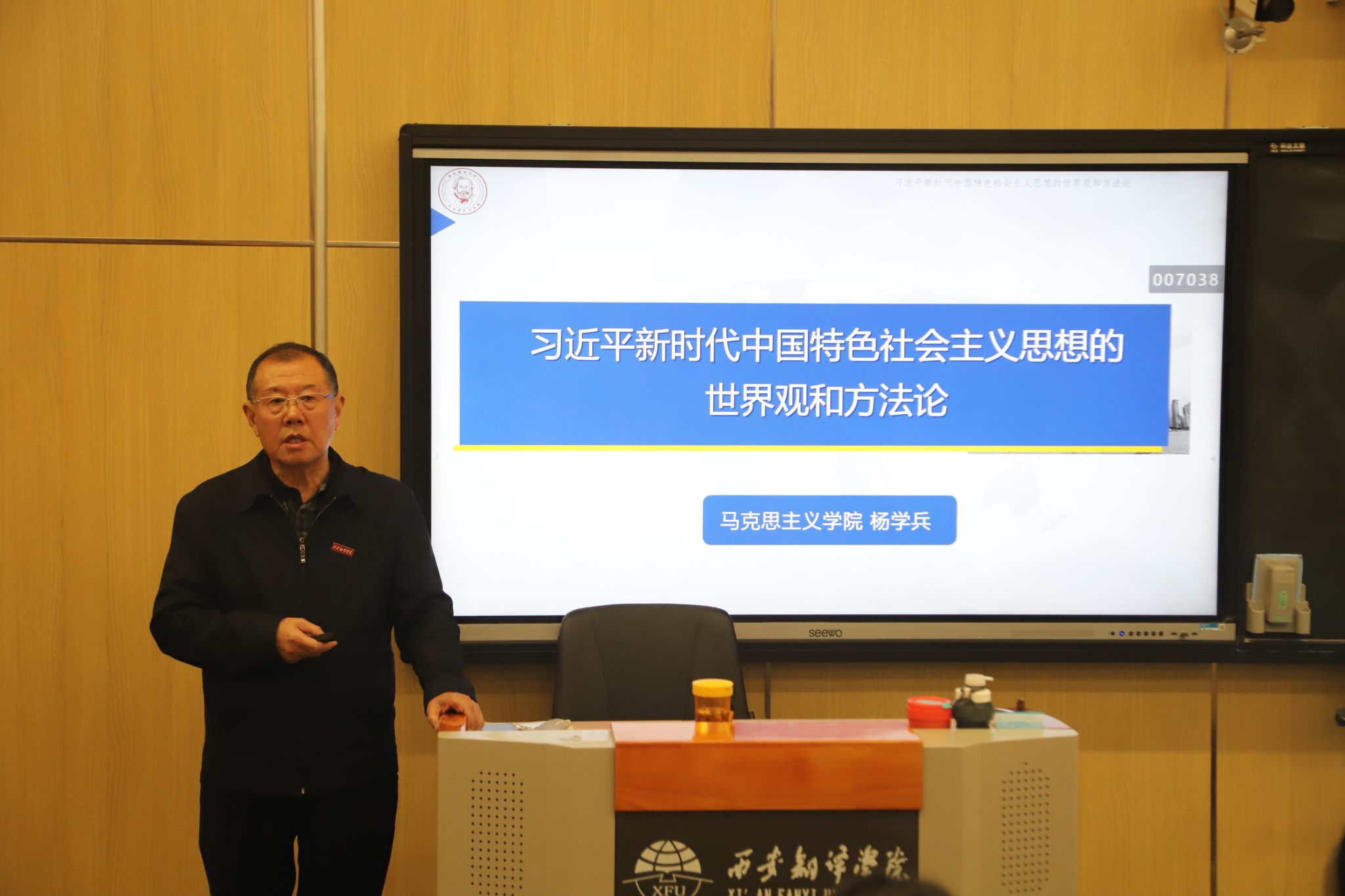 杨院长以《习近平新时代中国特色社会主义思想的世界观和方法论》为主题,从习近平新时代中国特色社会主义思想世界观和方法论的生成逻辑、习近平新时代中国特色社会主义思想所蕴含的精髓要义、准确把握“六个必须坚持”的基本内涵这三个方面开了精彩的宣讲。