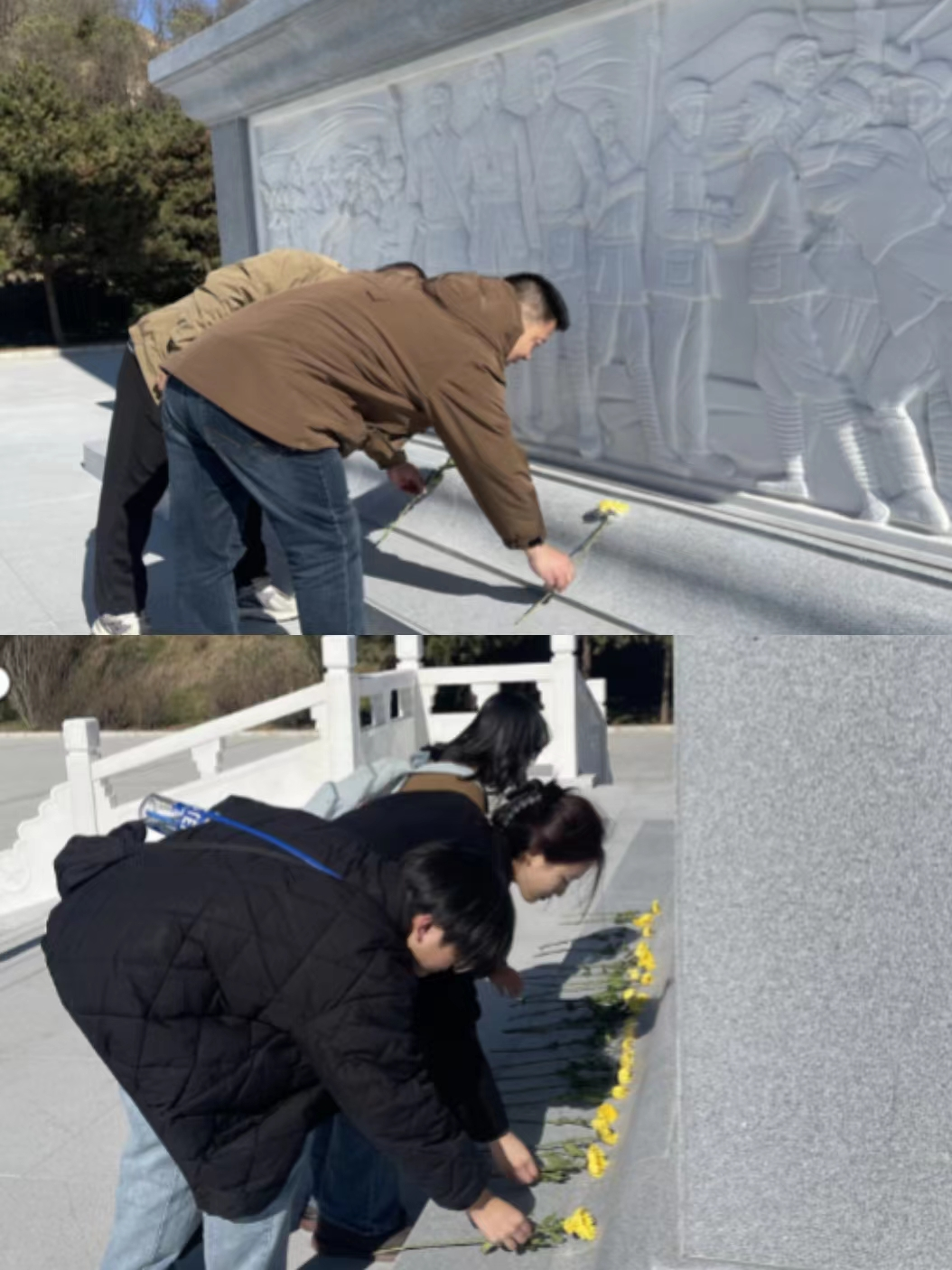 参观全部展厅后,英五支部所有同志怀着无比崇敬的心情和崇高的敬意开展马栏革命纪念碑献花活动。“山河无恙,英雄不朽”。全体党员整齐列队、庄严肃立,手捧鲜花缓缓走向纪念碑,敬放在烈士墓前,瞻仰纪念碑。