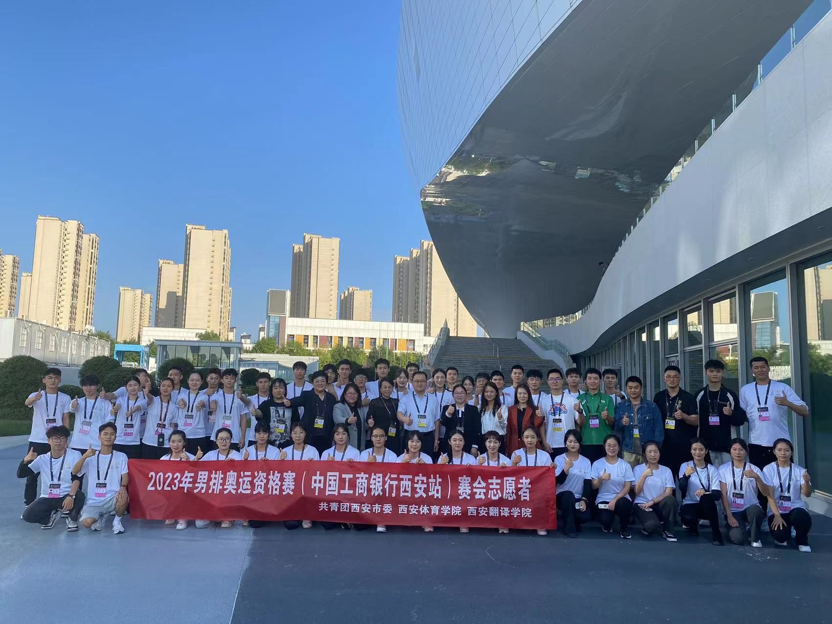 随着曲江竞技中心的最后一场赛事圆满收官,在西安翻译学院校团委的组织下,英文学院、高级翻译学院选拔的63名青年志愿者圆满完成为期18天的“2023男排奥运资格赛西安站”的所有志愿服务工作,顺利返校。