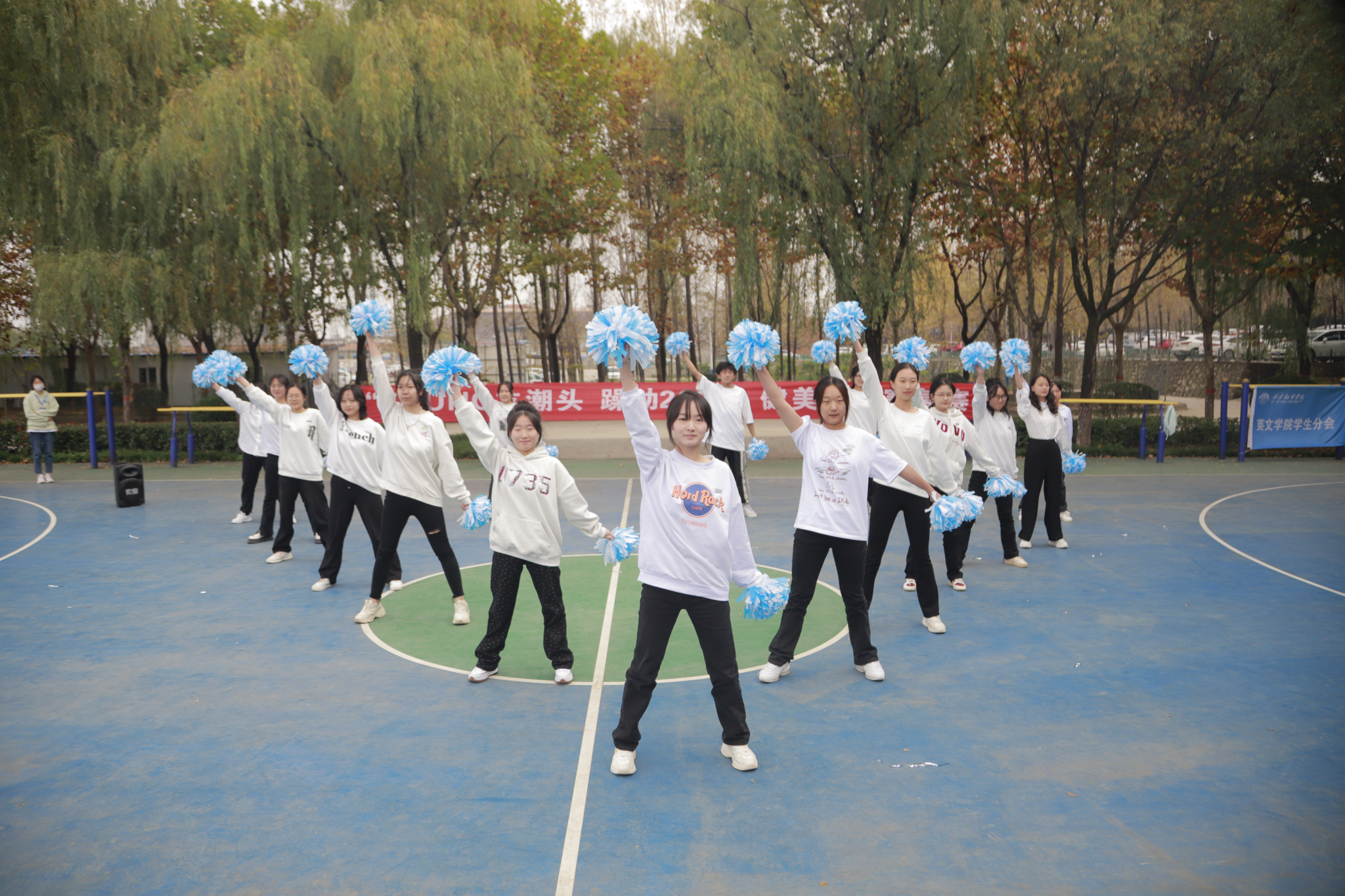 英文学院学生会于2023年10月24日12:00在西区篮球场举行了“YOUNG立潮头 躁动2023”健美操复赛。