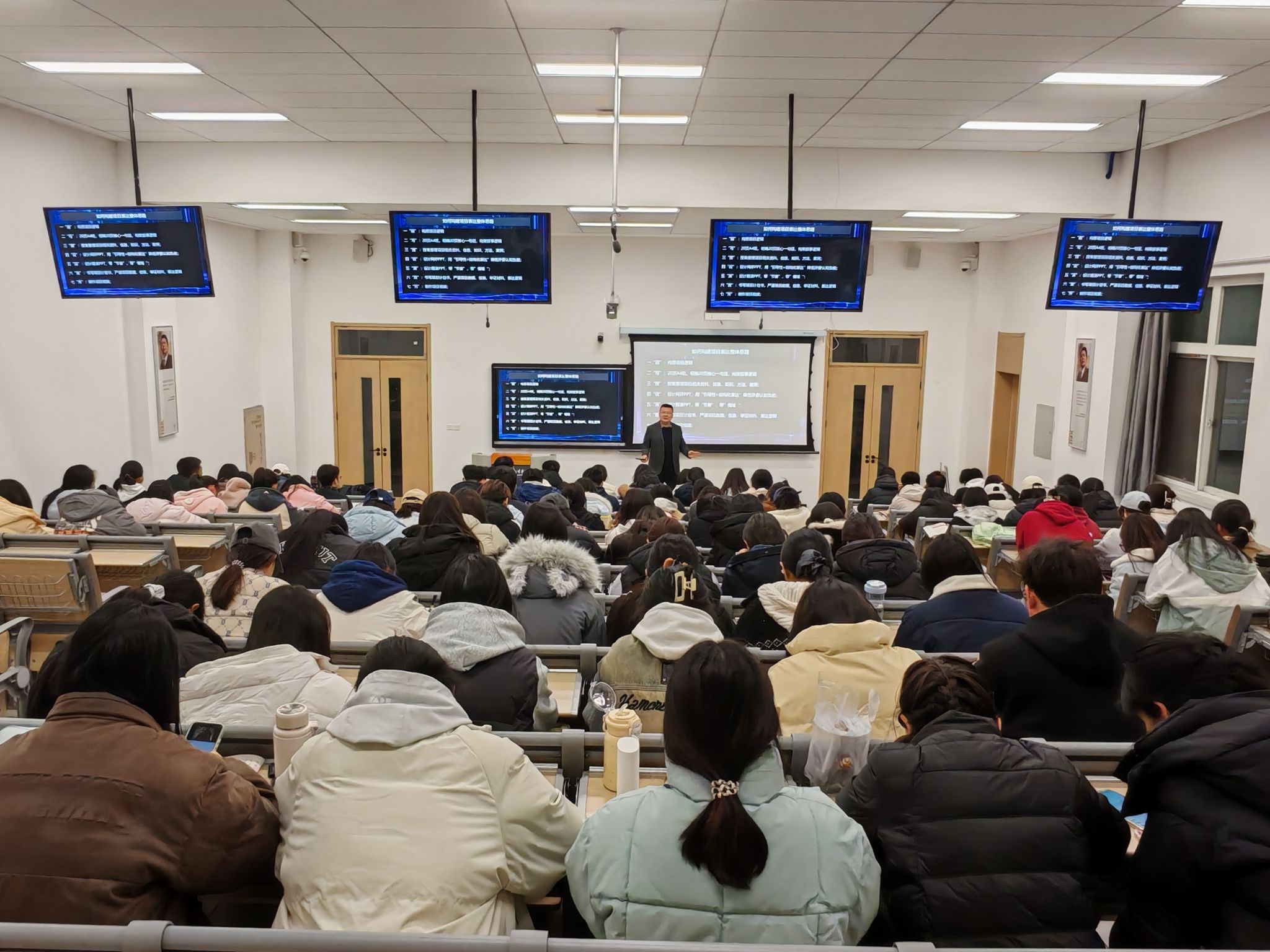 案例解析环节,赵中浩通过剖析高水平双创赛事中的代表性获奖项目,着重阐释了创新思维在不同赛事环节的具体呈现方式。在选题立意、需求洞察、方案设计等关键维度的解析过程中,强调了逻辑思维与创新思维如何共同作用于优秀项目的培育过程,并总结出成功项目必备的要素:明晰的价值定位、严谨的论证过程、高效的资源配置与卓越的执行能力。本场讲座通过系统的思维训练与案例解析,有效提升了学生的创新思维能力,为其后续开展项目优化与实践创新提供了重要的方法论指导。