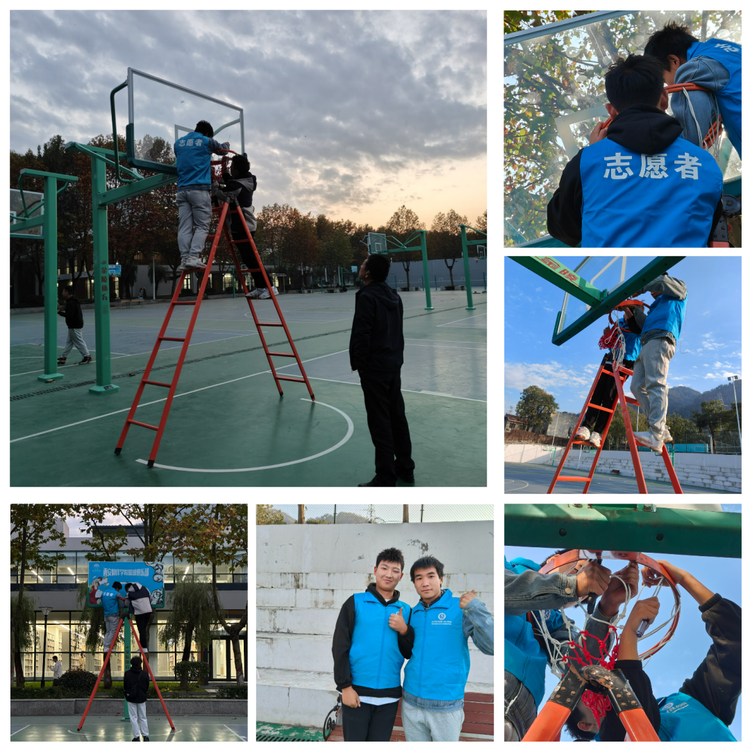 此次篮球网更换的活动主要是对我校东西区篮球场处的破损篮球网进行更换。经过一整天的忙碌,在志愿者们的合作努力下,破损、老化的篮网已完成更换,以供同学们使用。