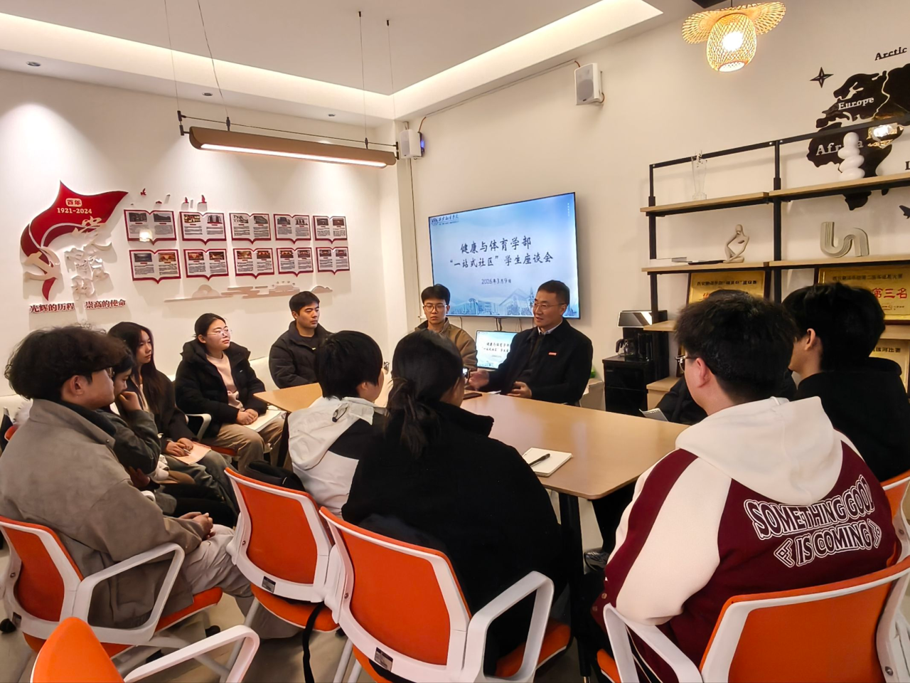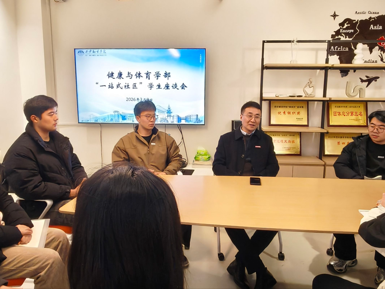 为深入贯彻落实高校“一站式”学生社区建设工作要求,精准把握毕业年级学生思想动态,切实解决学子成长发展中的急难愁盼问题,3月9日,健康与体育学部“一站式”学生社区2026年第一次学生座谈会在微创空间顺利召开。学部党委书记兼副部长赵桢宇参加会议,与2023级学生代表面对面交流、心贴心沟通,倾听学生心声、回应学生诉求。