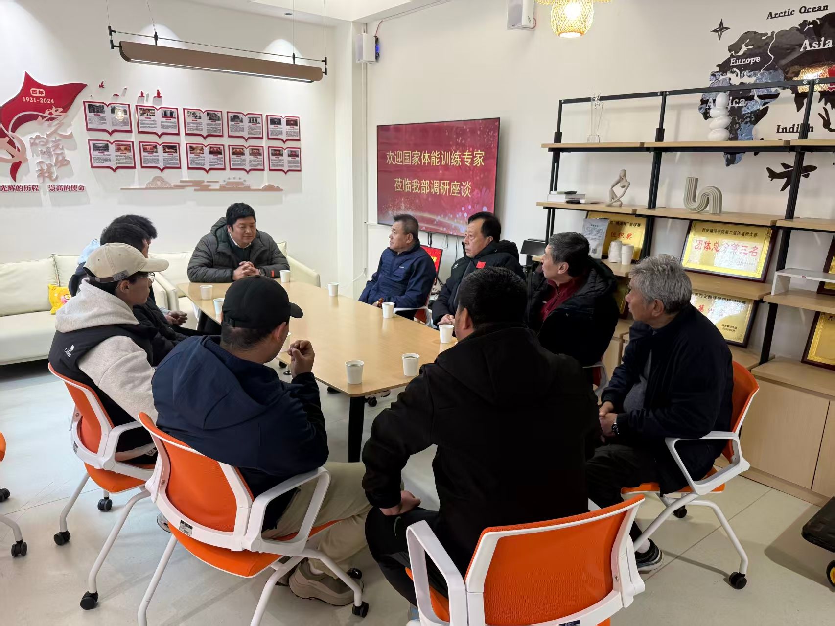 健康与体育学部党委书记、副部长赵桢宇,体育系副主任武陈,体育系教授张勇、黄文林等学部领导及骨干教师出席会议,本次座谈会由体育系主任马庆主持。应邀参会的业界代表来自多家体育行业优质单位,包括陕西省田径运动管理中心跳跃组教练孟凡宇,西安翱翔体育创始人邵福生、校长李波,鸿都乐驹体育俱乐部教练陈赵荣,西安锐动体育俱乐部杨安以及西安体育学院田径教研室教师李金等行业专家与企业负责人。