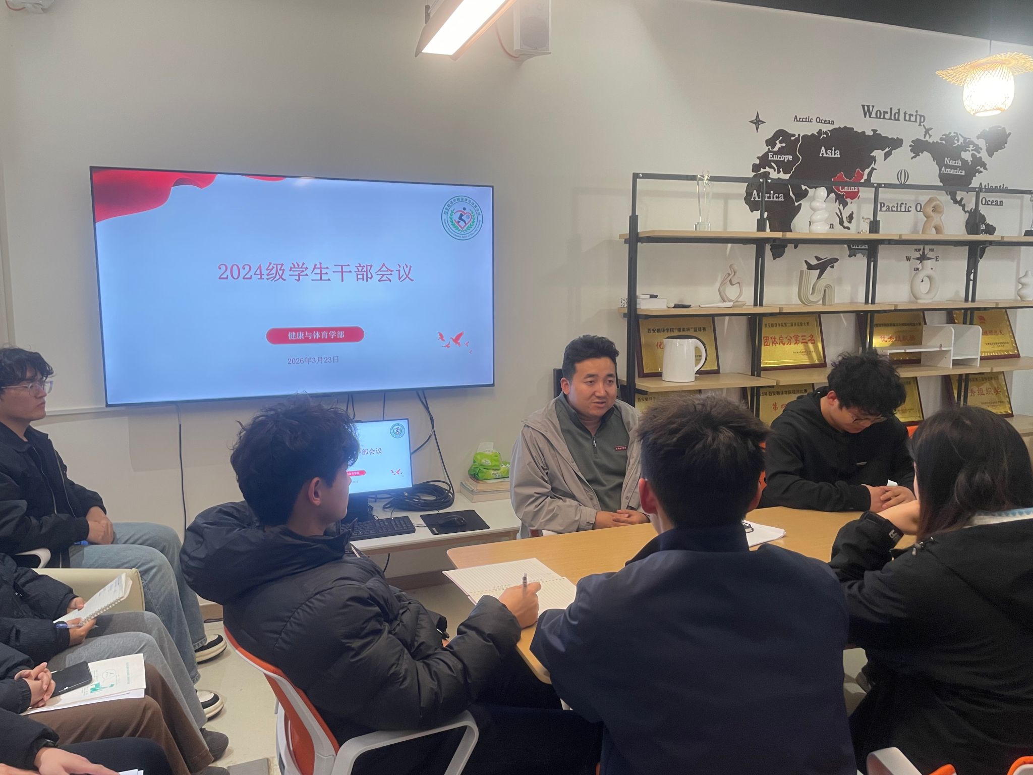 为进一步加强学生骨干队伍建设,夯实班级管理根基,营造班风正、学风浓、作风实的育人氛围,充分发挥班干部在学部学生管理、人才培养中的桥梁纽带与先锋模范作用,3月23日晚,健康与体育学部24级班干部专题工作会议顺利召开。学部综合办主任李栋主持会议,辅导员牛帅、曹睿参加会议,2024级全体班干部参会交流。