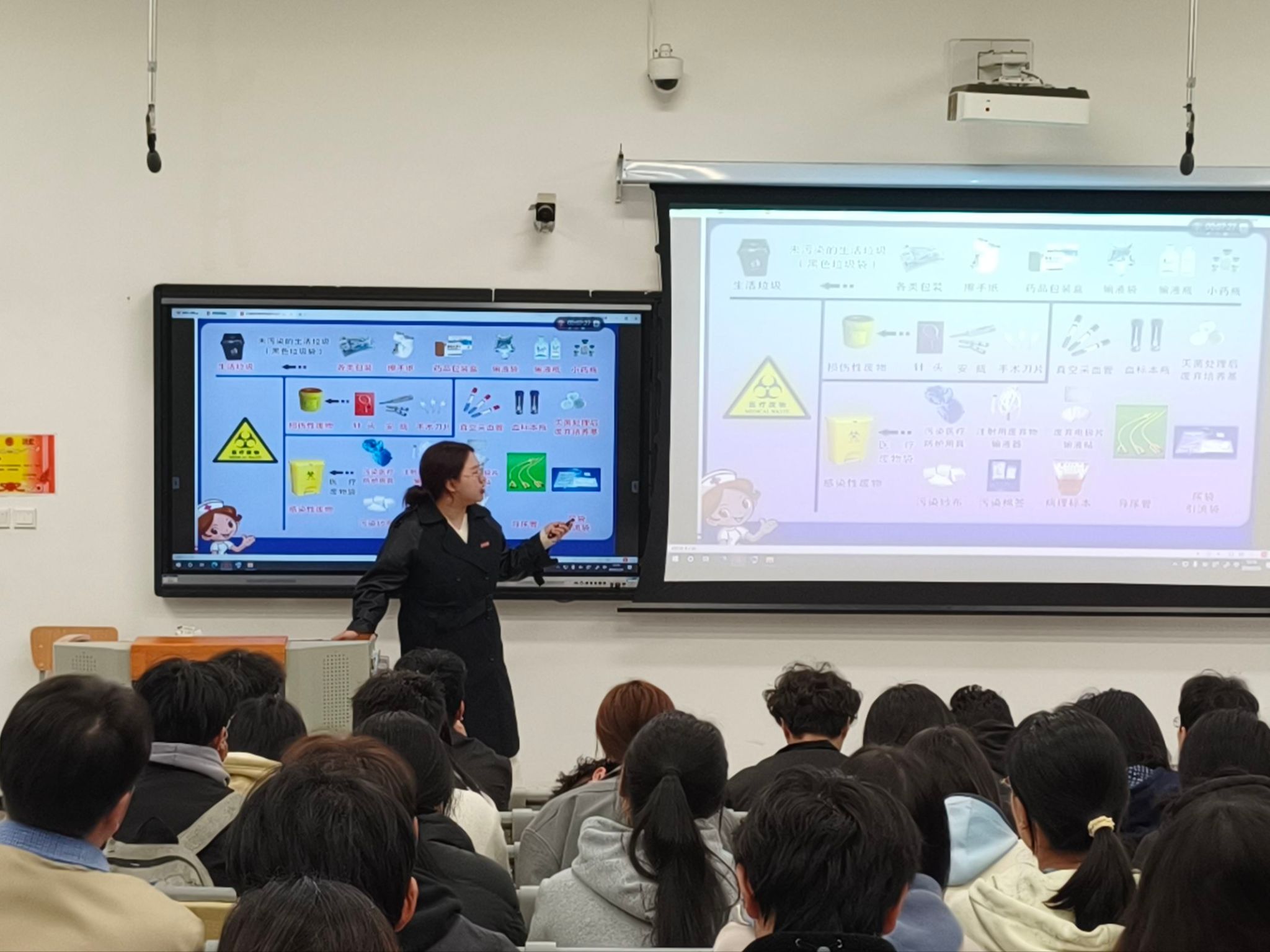 培训中,叶珍妮老师系统讲解了医疗垃圾分类、实验课程登记、开放实验课预约、仪容仪表规范及日常实践管理等主要内容,并结合典型案例明确实验室运行准则。她重点介绍了本年度实验中心引入的智慧门禁系统、设备改造及储物空间升级等举措,其中智慧门禁实现出入智能化管理,储物升级改善了器材存放条件,为实验教学提供了更加便捷高效的服务保障。