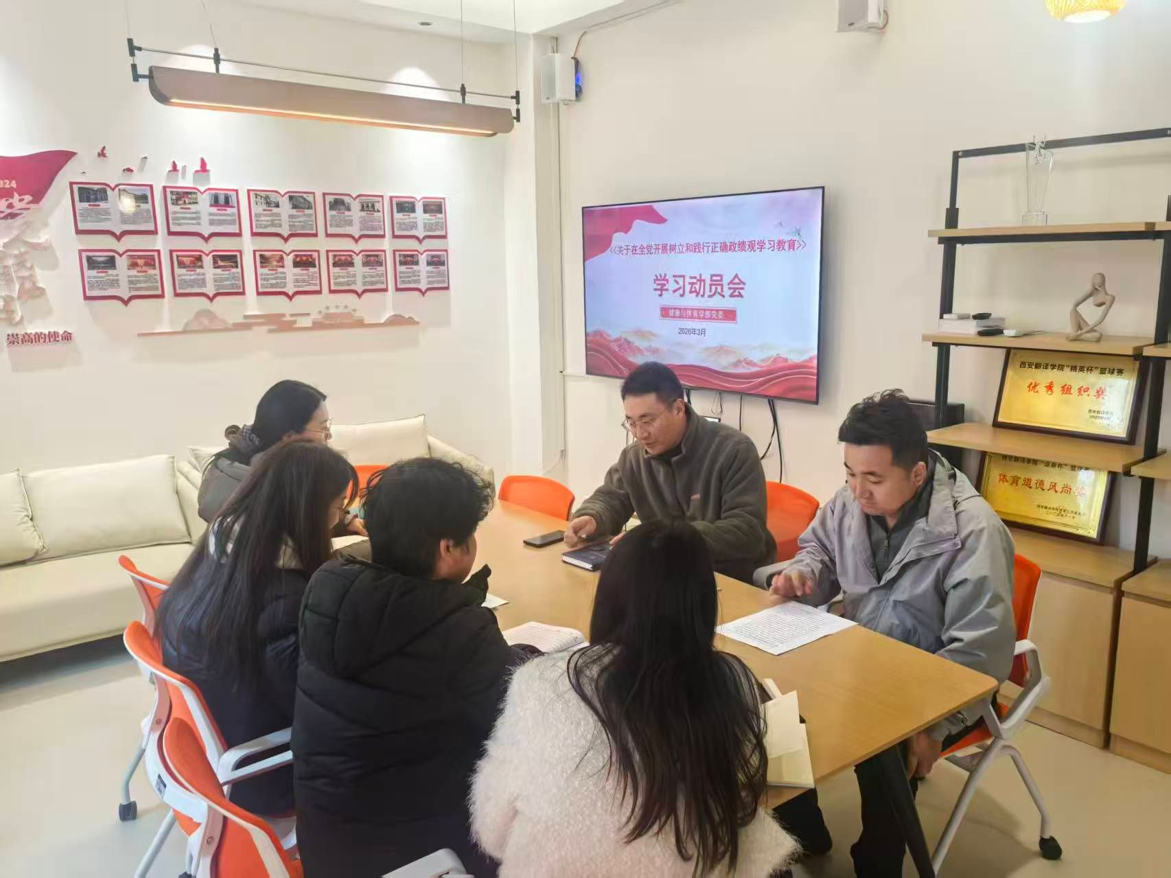 会上,全体人员开展集中专题学习,传达中央及教育系统、体育领域相关文件精神,研读《习近平关于树立和践行正确政绩观论述摘编》。参会人员紧扣“为民造福是最大政绩”核心要义,结合学部“健康第一”教育理念、体教融合、师生身心健康保障等办学实际交流研讨,进一步深刻把握正确政绩观的内涵与实践要求,统一思想、凝聚共识、激发干事干劲。