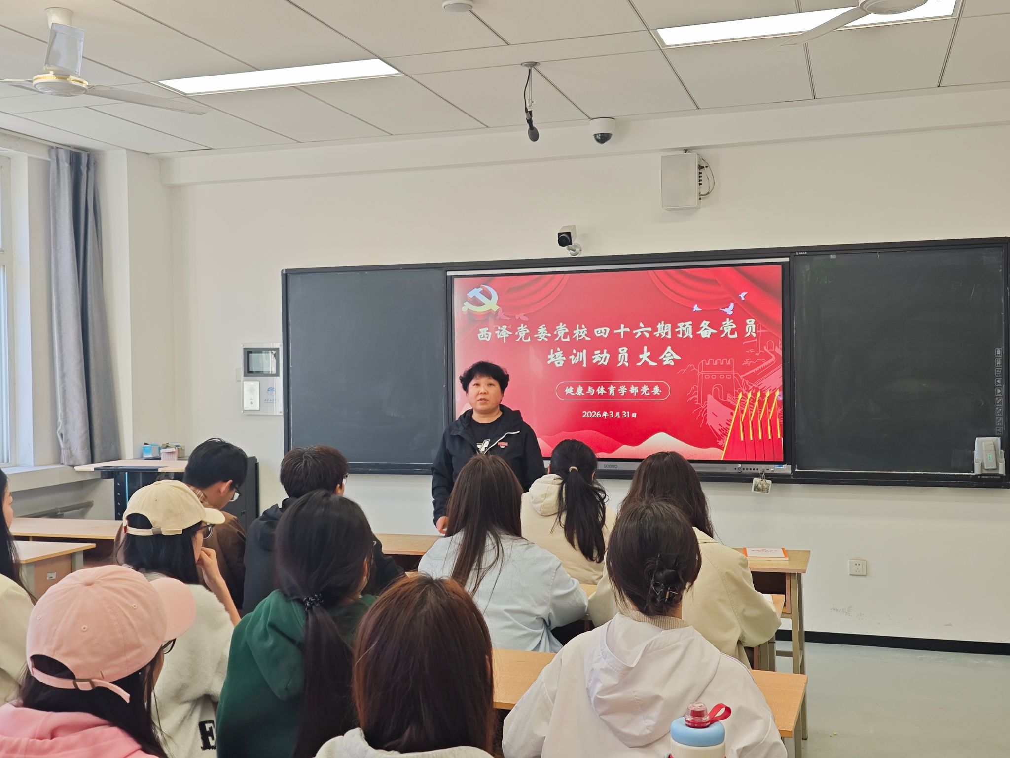为扎实推进党员教育培训工作,筑牢学生预备党员理想信念根基,提升其政治素养与履职能力,2026年3月31日下午16:00,健康与体育学部党委在1043教室召开学校第46期预备党员培训动员会。学部党委组织委员李雅妮及全体参训学生预备党员参加会议。