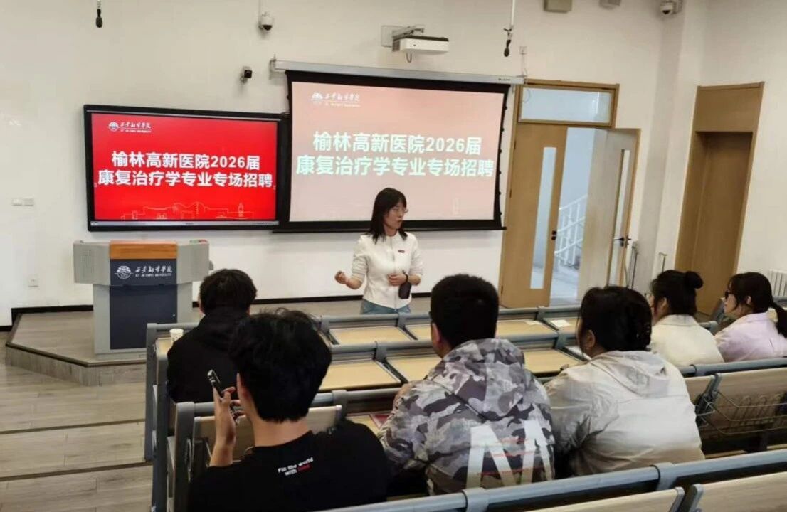 为切实助力2026届康复治疗学专业应届毕业生实现高质量就业,4月10日,健康与体育学部联合榆林高新医院举办专场招聘会,为毕业生提供优质就业机会。本次招聘会由健康与体育学部医学系副主任赵舒蒙、形态学教研室主任王志荣担任面试官,2026届康复治疗学专业应届毕业生积极参与。