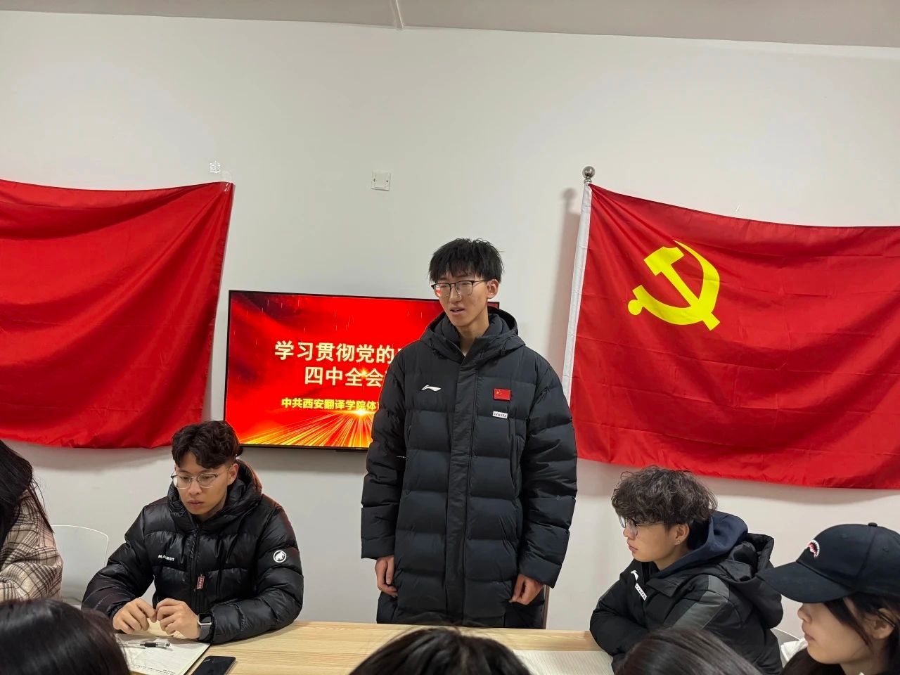 为了大力推进一站式学生社区建设,深入学习贯彻党的二十届四中全会精神,切实把思想和行动统一到全会部署上来,2025年11月19日,西安翻译学院体育学院党支部在东5公寓学生事务工作室组织开展专题学习会议。